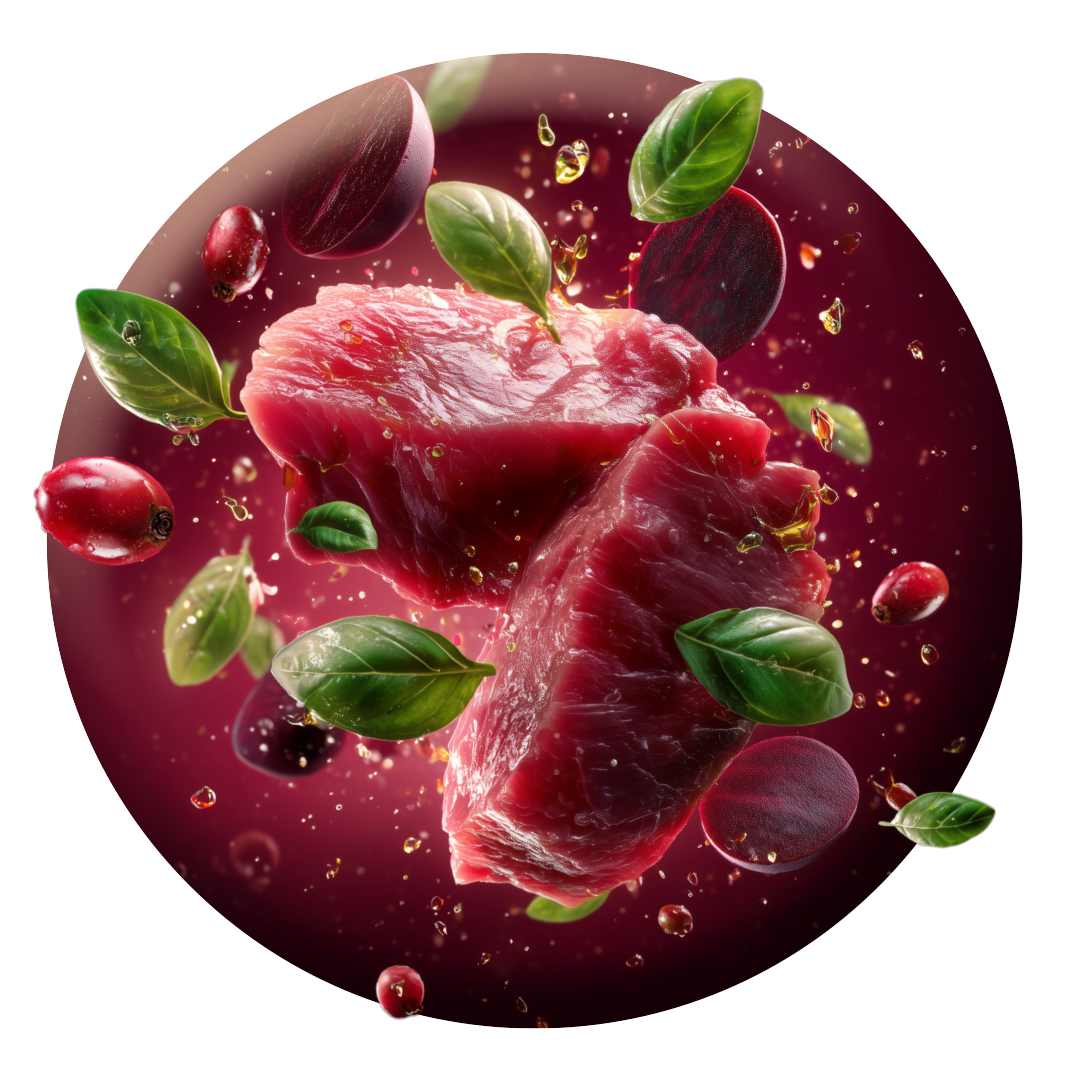 Unikátní výživový koncept čerstvého masa v kombinaci s vysokou nutriční silou pečlivě vybraných lesních bobulí.